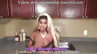 بيني باكس وسارة بانكس راكعتان في المطبخ وتمص قضيب حبيبهما الكبير