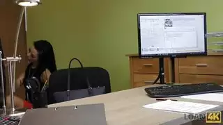 فاتنة الآسيوية ذات الشعر الداكن تمتص بلطف عصا لحم ضخمة ، على الأرض ، أثناء وجودها في المكتب