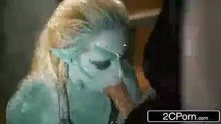 مثير الأزرق العينين في سن المراهقة مع ابتسامة جميلة ركوب عميلها.