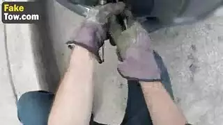 امرأة سمراء مثير في سن المراهقة مص الديك سائق التاكسي المحلي