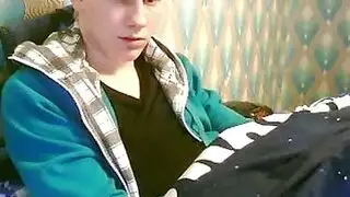 يلعب المراهق الجميل في جوارب طويلة أسود مع ديك كبير كبير.