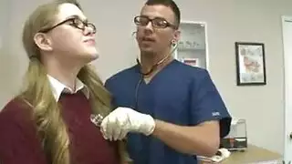 الطبيب العجوز يكشف على المريضة المراهقة وهي عارية وينيكها في العيادة