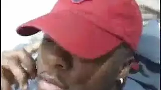 امرأة سمراء الساخنة مع الشعر الأسود هو مص الديك الأسود الكبير، في حين أن شريكها يئن.