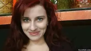 مراهق أحمر رائع رائعتين في جوارب عارية يلعب مع القضيب الصعب خلال إحدى جلساتها المجد