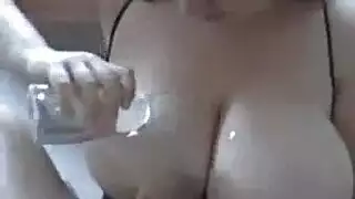 فاتنة كبيرة الحلمه لها الثلاثي مع رجل أقرن أمام المرآة.