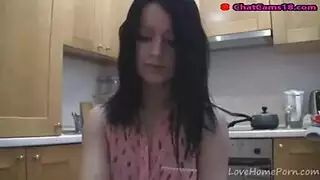 مراهقة قرنية وصديقها الجديد يمارسان الجنس الحسي في غرفة الفندق ، في المطبخ
