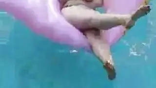 كانت جبهة مورو شقراء مع الثدي الكبيرة تنشر ساقيها لتظهر لنا كسها العاري بجوار حمام السباحة.
