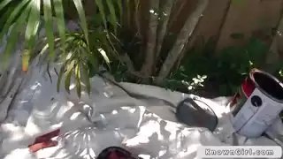مفلس في سن المراهقة فاتنة الملاعين نفسها مع اللعب.