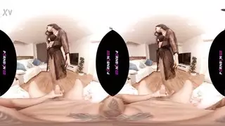 وضع ميسي على فستان زهري مثير وممارسة الجنس مع خادمة لها في سريرها الضخم.