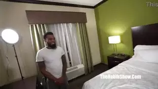 وقحة اللاتينية فرك بلطف كس شعر مشعر قليلا، مع وجود جلسة جنسية عارضة مع رجل أسود وسيم.
