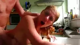 صغير في سن المراهقة ، مارس الجنس في سن المراهقة الألمانية في المطبخ ، في منتصف النهار