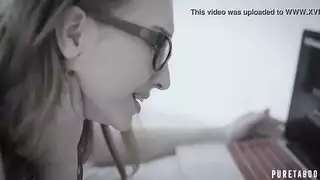بعد أن مارس الجنس تمامًا في كسها، تريد هذه الشقراء ذات النظارات أن تستقبل