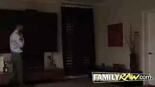 ابنة خطوة لطيفة تمتص ديك والدها الصعب خطوة قرنية والحصول عليها داخل شقها.