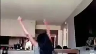 بعد أن انتهت من لعب مهمة في لعبتها المفضلة ، بدأت الفتيات في حالة سكر اللعب مع دسار لا يكل