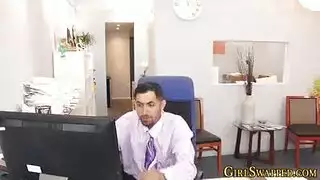 فاتنة الآسيوية مع الحمار جولة، نزل داي برين على ركبتيها امتص ديك