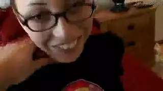 فتاة شقراء رائعتين مع نظارات تحصل مارس الجنس أصعب من صديقها، وتينينج بينما كومينغ.