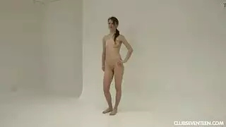 فتاة نحيفة بجسدها النحيف تصبح عارية