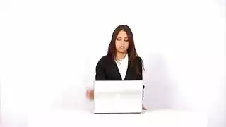 تحصل امرأة سمراء سلوتي على جرعتها اليومية من اللعنة في مكتبها ، بدلاً من القيام بعملها