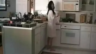 امرأة سمراء عاطفية مع بوم شعر، حصلت دانا فيسبولي على المطبخ وجعلت فيديو إباحي.