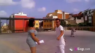 بارد شقراء ناضجة يظهر جسدها مثير في الأماكن العامة
