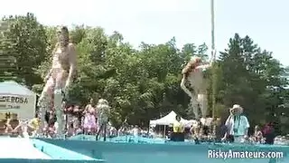 امرأة سمراء غريب هي الاستحمام أثناء امتصاص ديك في نفس الوقت، في حديقتها الساخنة