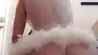 لمس ثديي صابون مثير في الحمام